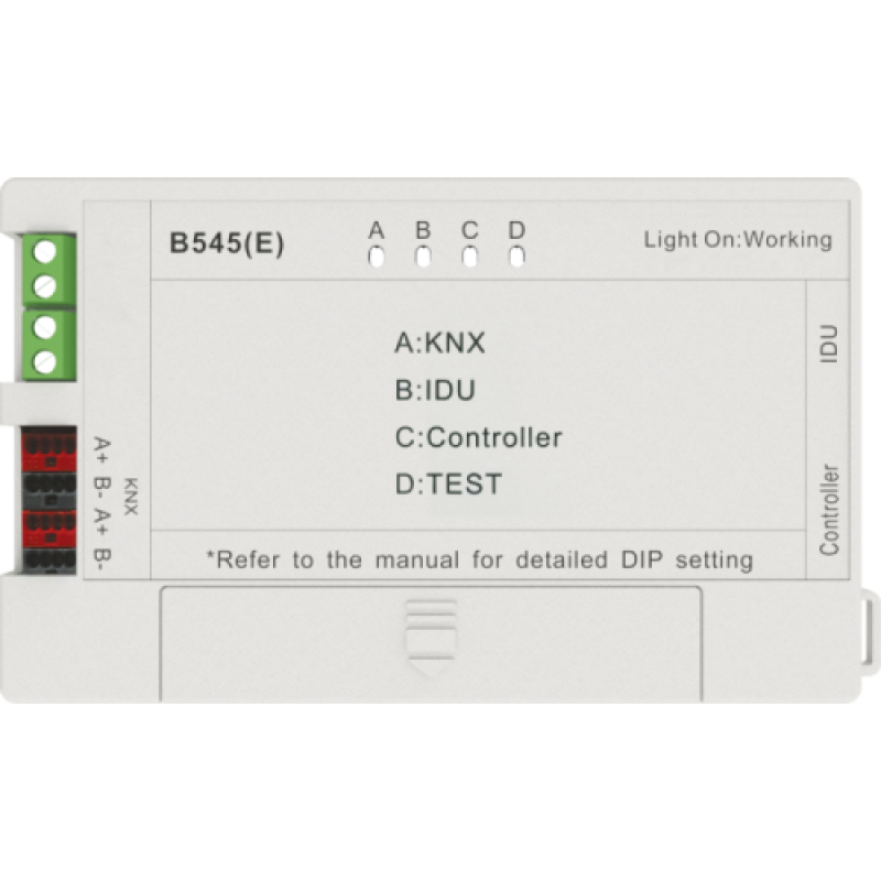 Адаптер преобразования сигнала B545(E) — это специальное устройство, которое подключается напрямую к внутреннему блоку сплит-системы для целей конвертации (преобразования) протокола обмена информацией и позволяет подключать внутренний блок в сеть диспетчеризации на основе стандарта KNX.