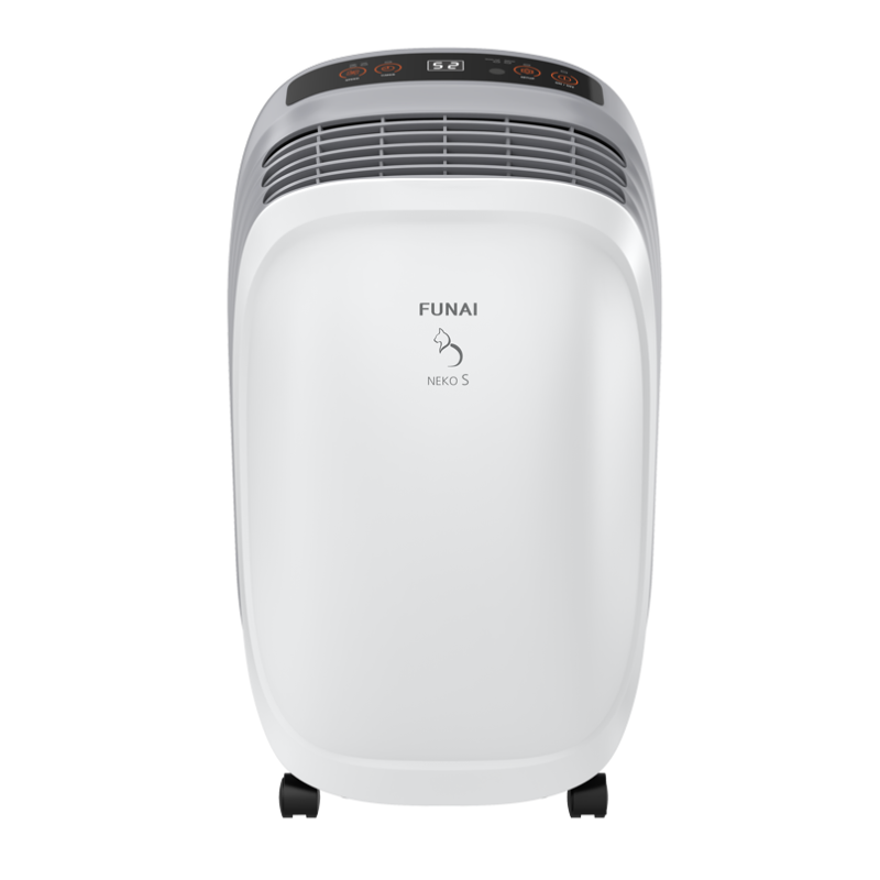 Базовая модель NEKO S имеет производительность по осушению до 10 литров в день и оптимальный набор настроек, что позволяет эффективно использовать дома, на даче или в гараже. Все модели осушителей FUNAI оснащены традиционными функциями: таймером 1–24 часа, системой настройки скорости обдува, интеллектуальным управлением уровнем влажности воздуха.