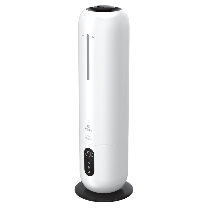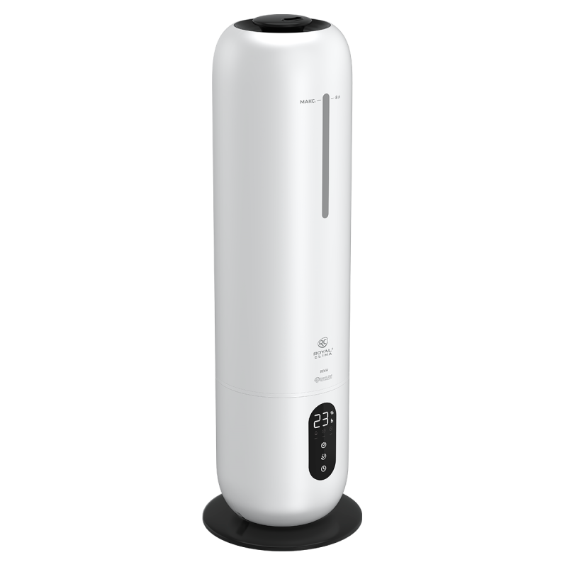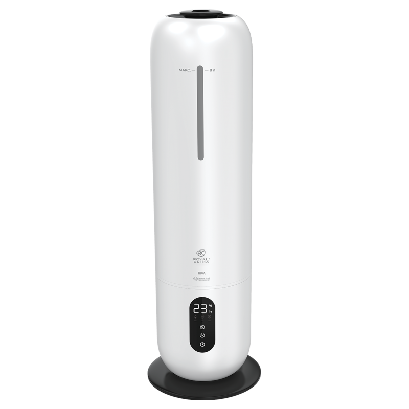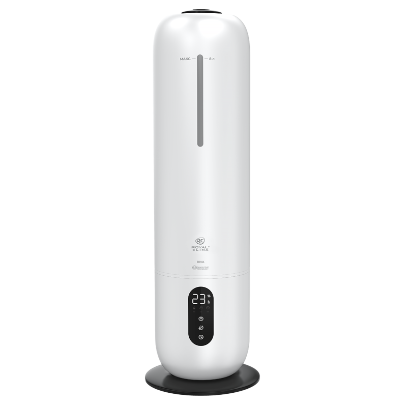 Увлажнитель воздуха RIVA (РИ́ва) от ROYAL CLIMA обладает революционным увеличенным объемом резервуара для воды: 8 литров. Работа без долива воды от 26 часов. Максимальная интенсивность увлажнения воздуха 300 мл/ч.