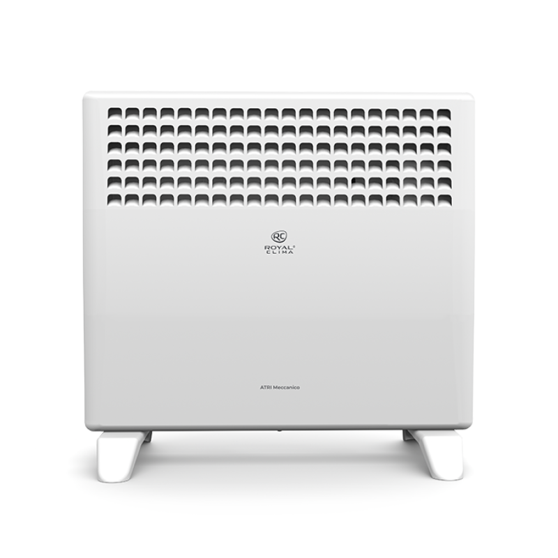 ATRI Meccanico обладает устойчивой конструкцией на ножках и уникальным дизайном с увеличенной площадью воздуховыпускных отверстий. Механическая панель управления конвектора расположена на боковой части для комфортного и удобного использования. Возможна установка прибора на стену, все необходимое уже входит в комплектацию.