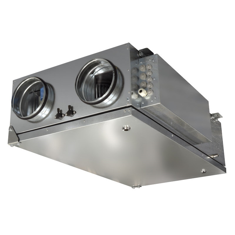 Очистка приточного воздуха происходит при помощи карманного фильтра класса EU5. Подогрев воздуха осуществляется при помощи электрического нагревателя (модели ZPVP PE) либо опционального канального водяного нагревателя (модели ZPVP PW). Для уменьшения энергопотребления используется высокоэффективный пластинчатый рекуператор с эффективностью до 75%. В процессе работы вытяжной воздух, удаляемый из помещения, очищается и поступает на пластинчатый рекуператор, при помощи которого из вытяжного воздуха извлекается тепло и передается приточному воздуху.