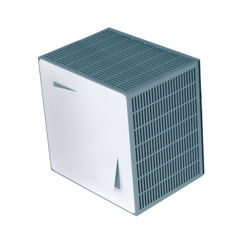 Гигроскопичный пластинчатый рекуператор осуществляет нагрев приточного воздуха энергией вытяжного в зимний период и охлаждение приточного воздуха. Благодаря увеличенному количеству пластин и повышению площади теплообмена эффективность рекуператора составляет до 85%. Гигроскопическая структура рекуператора позволяет влаге, сконденсировавшейся в вытяжных каналах, переходить в приточные каналы, увлажняя воздух в зимний период.